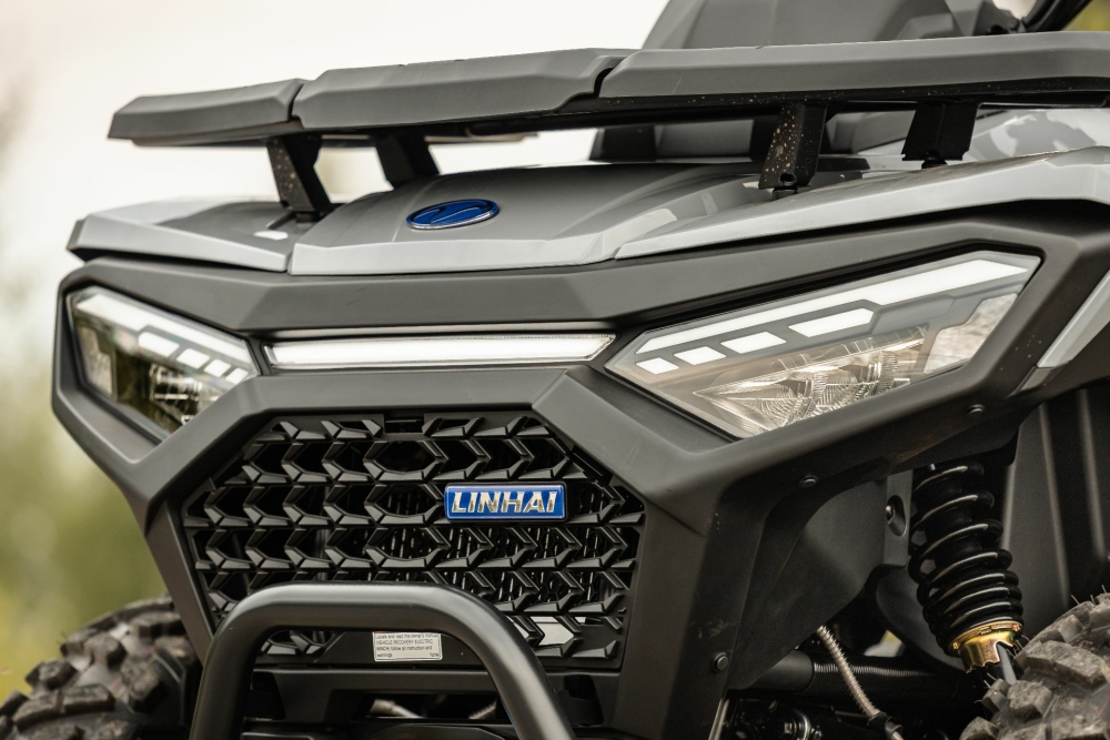 Dotări - Cârlig de remorcare omologat, troliu electric de 1360 kg, apărători pentru mâini, suporturi pentru bagaje față/spate, lumini LED, scaun cu spătar și mânere de susținere pentru pasager, priză 12V, port USB