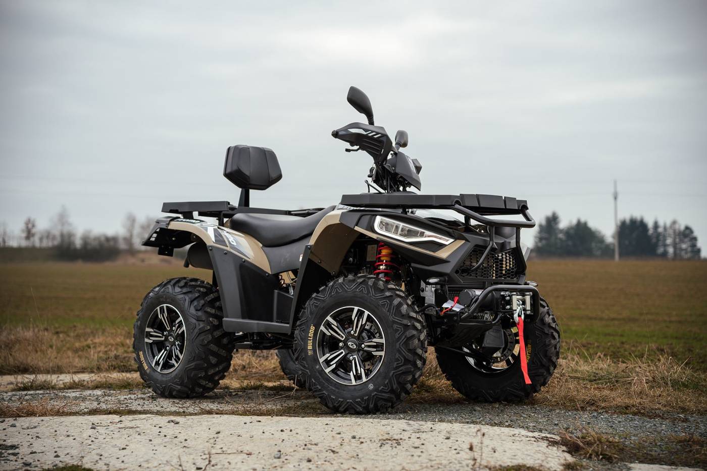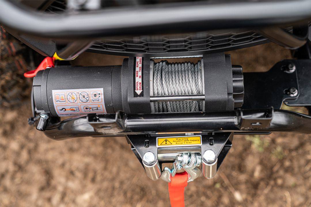 Dotări Cârlig de remorcare omologat, troliu electric de 1360 kg cu telecomandă, apărători pentru mâini, bară de protecție față/spate, suporturi pentru bagaje față/spate, scaun cu spătar pentru pasager, priză tip brichetă în consolă, faruri LED-Matrix