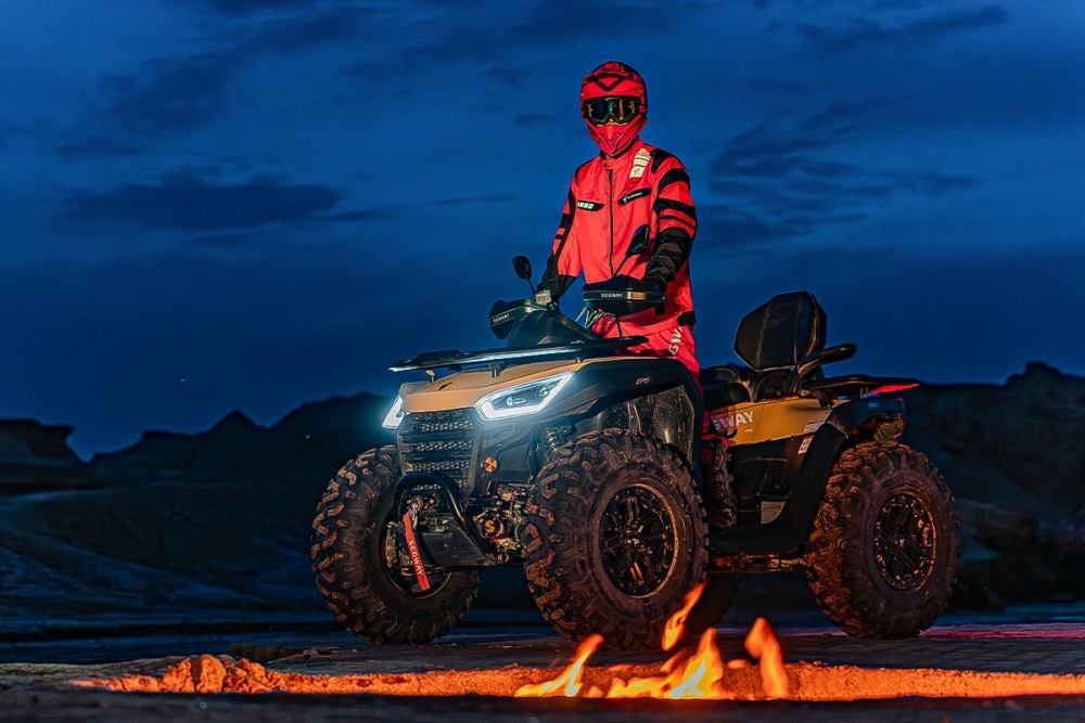 Troliu electric de 2041 kg, scaun cu spătar pentru pasager, cârlig de remorcare, bară de protecție față/spate, suporturi pentru bagaje față/spate, suporturi antiderapante pentru picioare, apărători pentru mâiniCuloriNegru/Bej; Gri/Roșu; Negru mat; Negru/CamuflajNumăr de locuri2 locuri