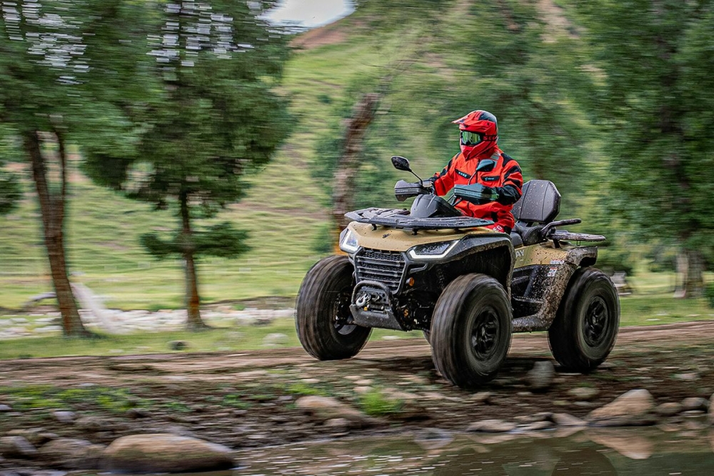 Dotări Troliu electric de 2041 kg, scaun cu spătar pentru pasager, cârlig de remorcare, bară de protecție față/spate, suporturi pentru bagaje față/spate, suporturi antiderapante pentru picioare, apărători pentru mâiniCuloriNegru mat; Negru/Bej; Gri/Roșu; Negru/Camuflaj