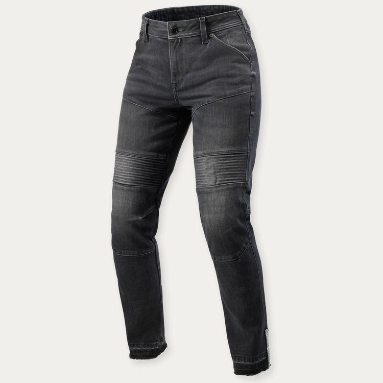 Building upon the popularity and momentum of our already established men’s Moto jeans, we bring you the Moto 2 Slim Ladies. Sleek and sophisticated riding denim. The Moto 2 Slim Ladies are characterized by a slim fit style, higher waist, and a 5-pocket construction—complete with slanted front pockets instead of the traditional curved pocket intake, and a depth-creating print on the coin and back pockets. The “destroyed” finish at the hem also ups the ante in terms of uniqueness. Furthermore, around back, a block-print pattern is added to the 2-part rear pockets and coin pocket.