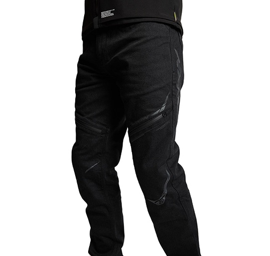 Protecțiile pentru genunchi accesibile prin fermoarele frontale întăresc acest aspect agresiv.