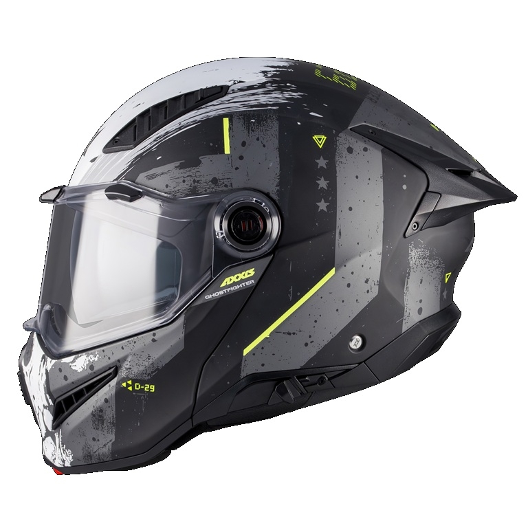 • noul model Axxis GhostFighter SV este casca flip-up cu ochelari de soare integrati omologata pe noul standard european de siguranta ECE 22.06 P/J dual certification;