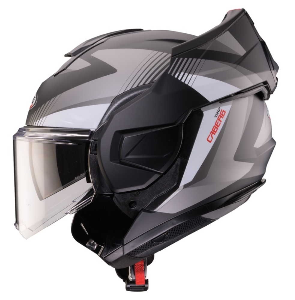 • TRIP este prima cască FLIP-BACK de la Caberg cu o bărbie reversibilă datorită unui punct de sprijin cu o singură rotație;