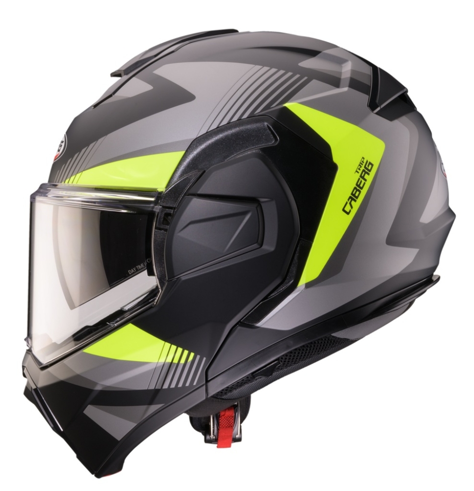 Casca modulabila (flip-back) Caberg model Trip SV Lunar L6 negru/gri/galben fluor mat Pinlock ready - lentila Pinlock inclusa