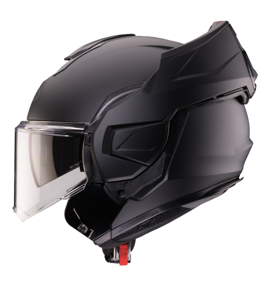 • comparativ cu căștile modulare tradiționale, apărătoarea de bărbie, atunci când este deschisă, nu rămâne deasupra carcasei, ci se rotește complet la 180 de grade până la spatele carcasei. Este omologată ECE 22.06 P/J (adică atât ca cască integrală cu apărătoare de bărbie închisă, cât și ca cască jet cu apărătoare de bărbie deschisă) pentru a satisface nevoile motocicliștilor care doresc să facă touring purtând o cască foarte versatilă. Apărătoarea de bărbie TRIP poate fi deschisă și închisă cu o singură mână, iar când este deschisă, pentru a evita închiderile accidentale, poate fi blocată cu maneta P/J poziționată în partea dreaptă a carcasei;