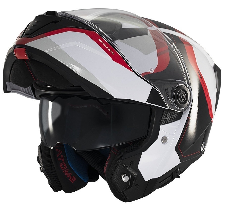 Casca modulabila MT Atom 2 SV Emalla B0 alb/rosu mat (ochelari soare integrati) Pinlock Ready - tip viziera: MT-V-35