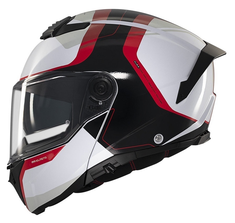 Casca modulabila MT Atom 2 SV Emalla B0 alb/rosu mat (ochelari soare integrati) Pinlock Ready - tip viziera: MT-V-35