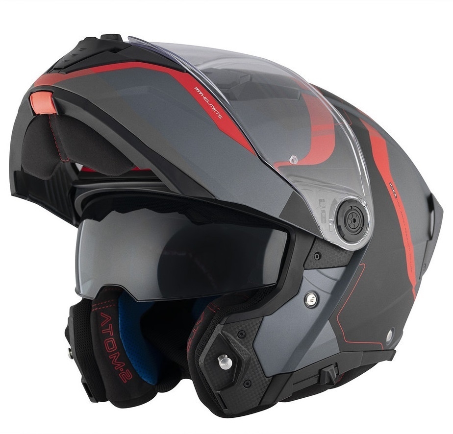 Casca modulabila MT Atom 2 SV Emalla B15 gri/rosu mat (ochelari soare integrati) Pinlock Ready - tip viziera: MT-V-35