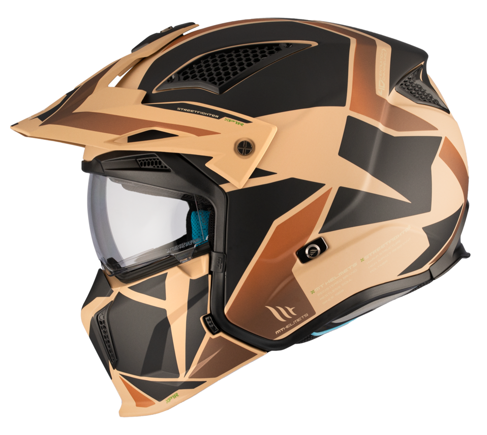Casca MT Streetfighter SV S P1R B9 maro mat (ochelari soare integrati) - masca (protectie) barbie si cozoroc detasabile - omologare noua ECE 22.06 - Maro mat , XS (53/54cm)