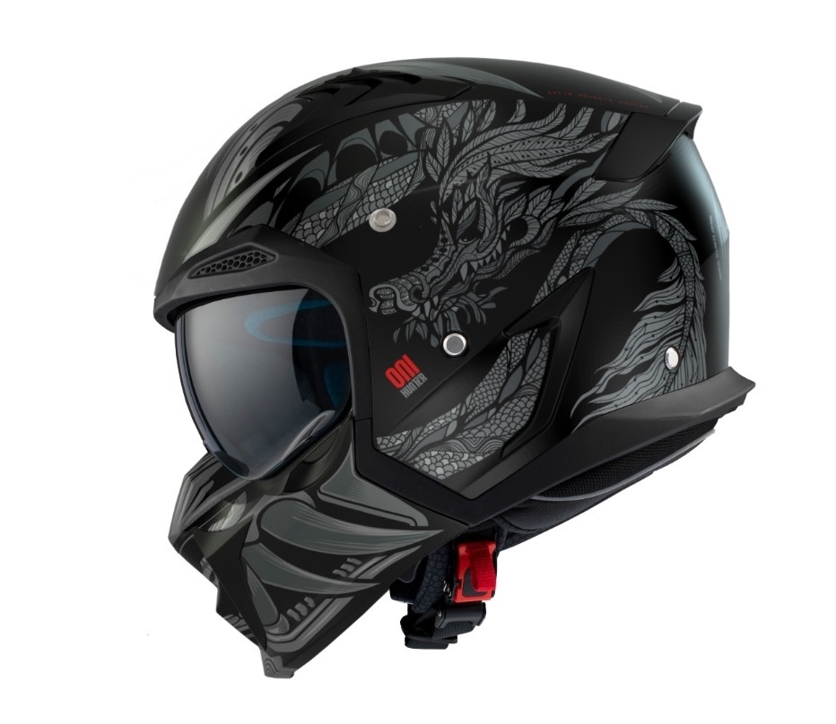 Casca Axxis model Hunter SV ONI B2 gri mat mat (ochelari soare integrati) - masca (protectie) barbie si cozoroc detasabile Caracteristici: fabricat din ABS - Policarbonat (rasina si termoplastic injectat, cu densitati multiple); calota exterioara: HIRP (High impact resistant protection); casca se vinde cu cozoroc ce se fixeaza cu capse; masca (protectie) barbie complet detasabila; cozoroc detasabil; ochelari de soare integrati; interior complet detasabil; interior fabricat din materiale antialergice; interior ventilat; design aerodinamic; cozoroc aerodinamic; cozorocul se fixeaza cu capse; sistem prindere reglabil; sistem inchidere casca metalic si micrometric - permite legarea castii foarte rapid; greutate - fara masca: - marimi: XS, S, M: 1200 +/- 50gr; - marimi: L, XL, XXL: 1300 +/- 50gr; greutate - cu masca: - marimi: XS, S, M: 1450 +/- 50gr; - marimi: L, XL, XXL: 1500 +/- 50gr. Omologari: ECE/ONU22.05/P; DOT.