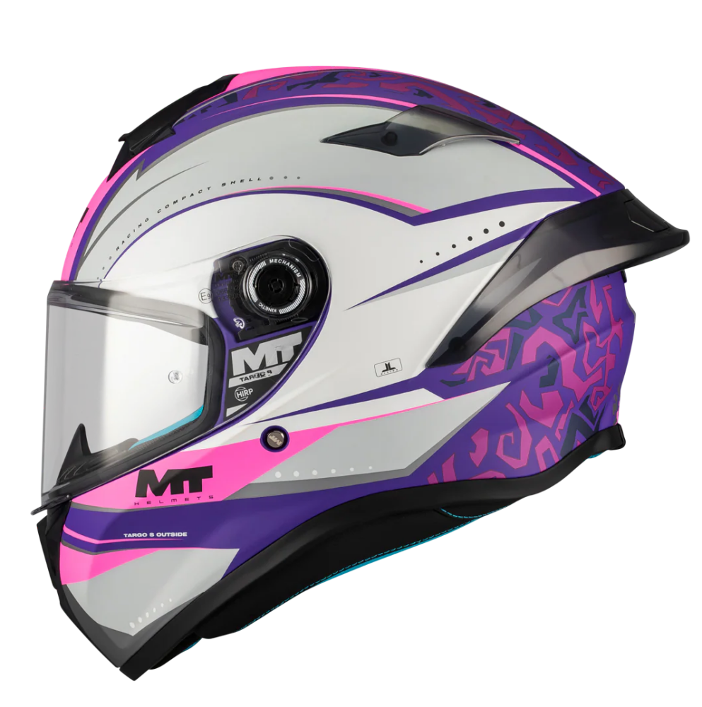 Casca integrala MT Targo S Outside C8 roz mat - omologare noua ECE 22.06 - tip viziera: MT-V-14 Descriere: • lansarea modelului Targo S reprezinta evolutia naturala spre noi standarde de calitate la un pret echilibrat, fiind urmasul modelului Targo Pro; - noul model Targo S o casca integrala omologata pe noul standard european de siguranta ECE 22.06; - este un model de casca destinata motocicletelor naked sau sportive, care incorporeaza noul mecanism de viziera tip MT-QVSS, un sistem patentat de MT si care permite shimbarea extrem de rapida a vizierei; - ca rezumat, noul model Targo S este este o casca spectaculoasa, la un buget redus. Caracteristici: • omologare ECE 22.06 - casca Targo S indeplineste cele mai ridicate standarde de siguranta europene; • MT-QVSS - Quick Visor Swap System - sistem proiectat intern de echipa de ingineri MT si echipat in premiera pe casca Targo S; • mecanismul MT-QVSS este patentat de MT si permite utilizatorului sa ataseze sau detaseze viziera foarte rapid si confortabil, fara a da casca jos din cap; • HIRP - calota noii casti Targo este produsa dintr-o combinatie de polimer denumita HIRP (High Impact Resistant Polymer). Aceasta formula are rezultate superioare la testele de impact; • MT-MDTC - Micrometric Double Teeth Closure - sistemul micrometric de fixare al castii a fost regandit sa fixeze in 2 puncte, pentru o siguranta sporita. Sistemul de fixare foarte usor de utilizat; ofera echilibrul perfect intre siguranta si comfort; • MT-NSIC - New Standard Intercom Cage - casca este prevazuta cu spatiu special in interiorul castii, denumit UCS (Universal Communication System), pentru a permite montare si depozitarea sistemelor de comunicatii Intercom, conform noilor reglementari de omologare; • Padding (interiorul castii) - interiorul castii a fost special conceput pentru fiecare marime de casca, pentru o potrivire perfecta. Materialele folosite la fabricarea interiorului castii permit o ventilare optima si nu retin umezeala. Toate elementele interioare pot fi detasate foarte usor si spalate sau inlocuite; materialele utilizarte sunt antialergice; • Built-in Visor Lock - cu un sistem simplu, dar eficient, acest model de casca are un blocator pe viziera care previne deschiderea vizierei in caz de impact. Date tehnice: • aplicabilitate in utilizare: - Racing: 70%; - Sport-Touring: 70%; - Touring: 70%; - Urban: 80%; - Offroad: 0%. • SHELL (calota exterioara): - material: HIRP (high impact resistant polymer); - numar calote: 2 (XS-M si L-XXL); - marimi disponibile: XS-XXL; - masa (greutate): 1500 gr. • interiorul castii: - EPS: densitatea multipla EPS asigura o mai buna absorbtie a socului in caz de impact; - Removable interior: interiorul este complet detasabil; - interiorul poate fi spalat; - interior fabricat din materiale cu protectie antibacteriala; - deflector nas; - casca conceputa pentru a permite montarea de sistem de comunicatii Intercom; • VENTILATION (ventilarea castii): - ventilatie la barbie si in partea de sus a castii, cu sistem inchis/deschis; - canale interioare pentru circulatia aerului, pentru a reduce temperatura si umiditatea; - ventilatii in partea din spate a castii pentru circulatia aerului; • VIZIERA: - MT-QVSS+: viziera cu sistemul inovativ MT-QVSS (Quick Visor Swap System), ce permite montarea si demontarea vizierei foarte rapid; - claritate: viziera fabricata din policarbonat high-quality, pentru o claritate ma buna; - blocator integrat in viziera; • SAFETY (siguranta): - omologari: ECE 22.06 + DOT; - sistem de fixarea a castii: MT-Micrometric + .