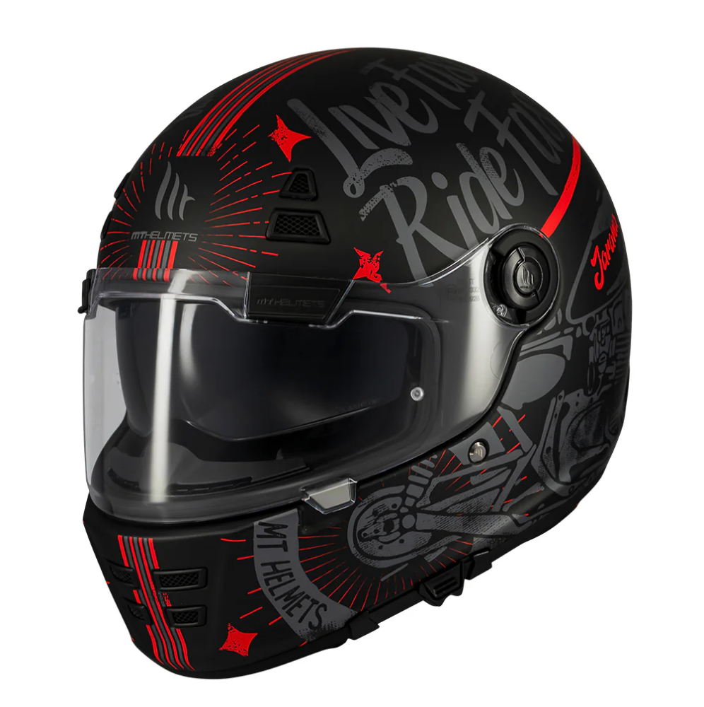 • mecanism vizor: echipa R&D a producatorului MT Helmets a proiectat un mecanism de viziera cu eliberare rapida a vizierei (Quick Release System);