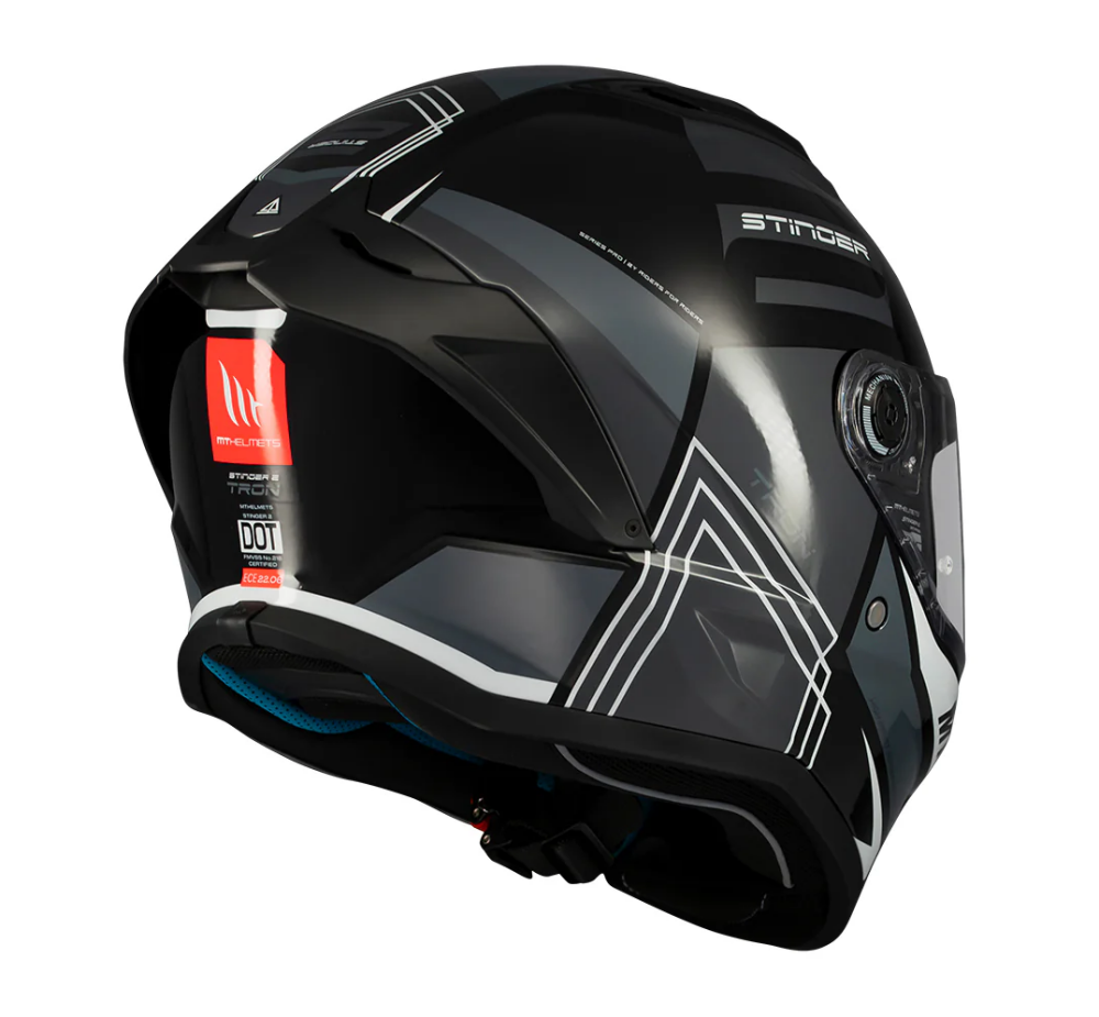 Casca integrala MT Stinger 2 Tron B12 negru/gri lucios - tip viziera: MT-V-28B - punctaj maxim SHARP Test – 5 stele - Negru/gri lucios , S (55/56cm)