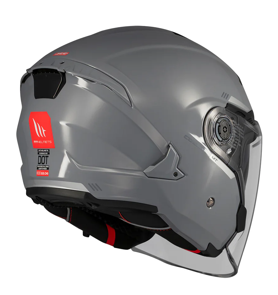• modelul Cosmo SV incorporeaza ultimele cartacteristici si inovatii ale producatorului MT in materie de casti: sistemul de schimbare foarte rapid al vizierei QVSS, erodinamica optimizata cu sistem nou de ventilare, si 2 tipuri de spoilere.