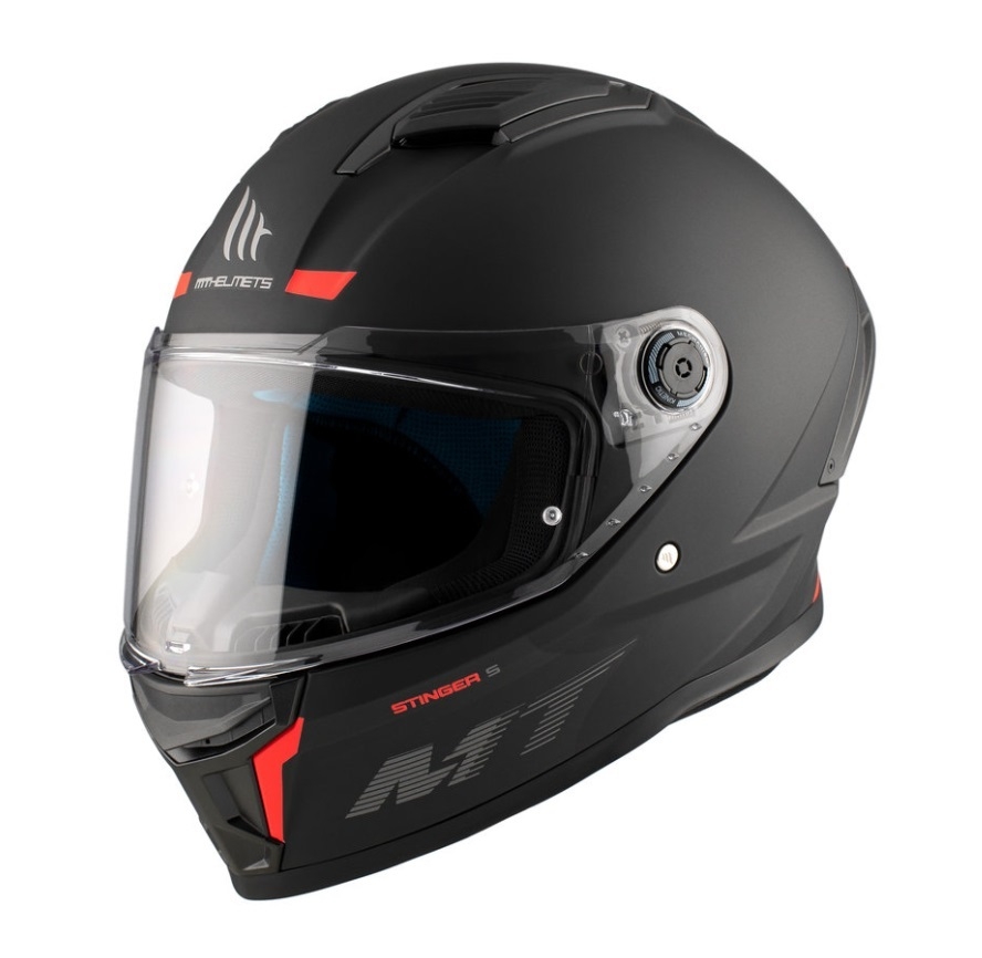 Casca integrala MT Stinger 2 A1 negru mat - tip viziera: MT-V-28B - punctaj maxim SHARP Test – 5 stele - Negru mat , S (55/56cm)