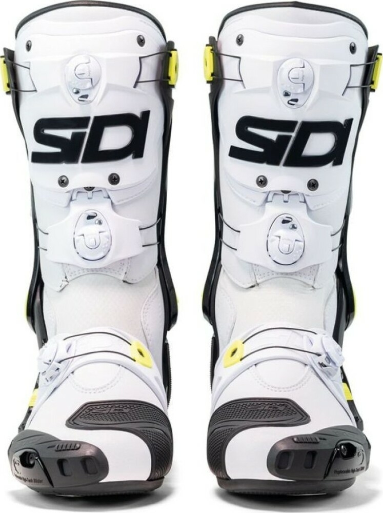 Rex este o cizmă de curse care nu face compromisuri în ceea ce privește siguranța. Fiecare componentă a fost concepută pentru a oferi protecție maximă, fiind purtată de piloții noștri profesioniști. Rex încorporează protectoare din TPU de înaltă calitate și un exoschelet din nailon ranforsat cu fibră de sticlă pentru un suport esențial. Sistemul de închidere cu rotiță din rășină de înaltă densitate este proiectat pentru a oferi o potrivire perfectă, permițând ajustarea cizmei pe ambele părți. Acesta este poziționat strategic pe exteriorul zonelor de contact, integrat în structura cizmei pentru a oferi protecție împotriva impactului. Designul anti-alunecare lateral asigură o experiență de condus sigură.
