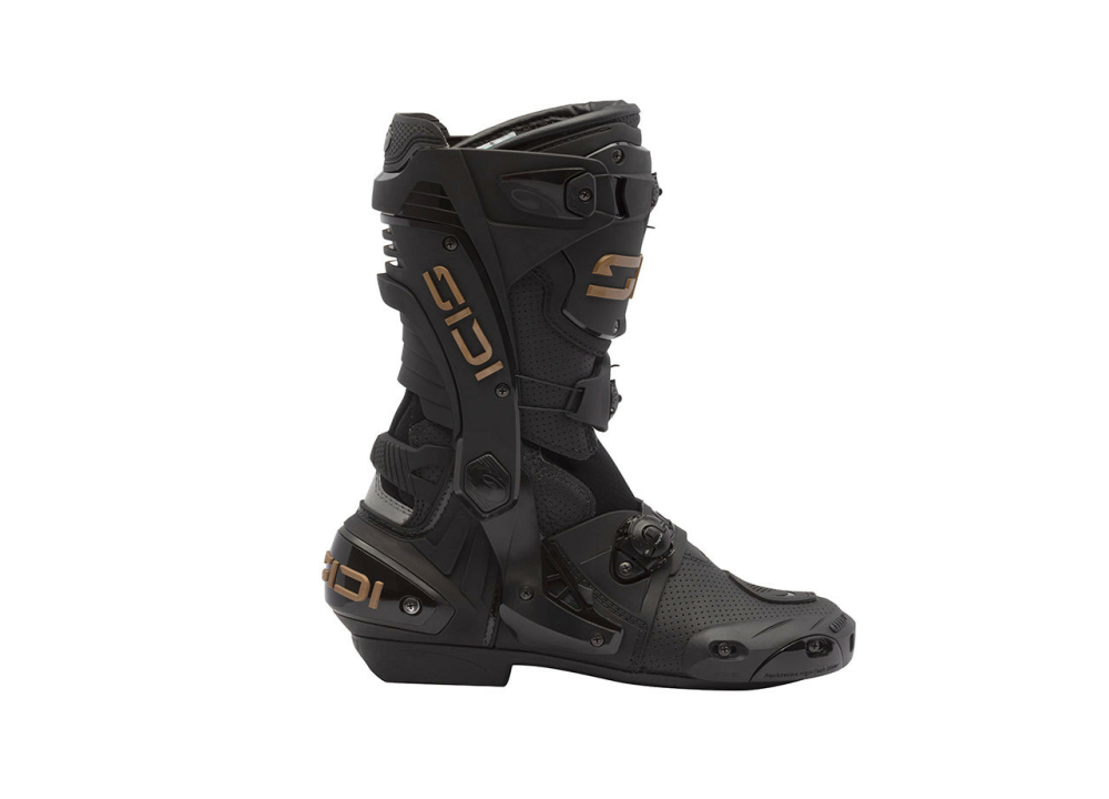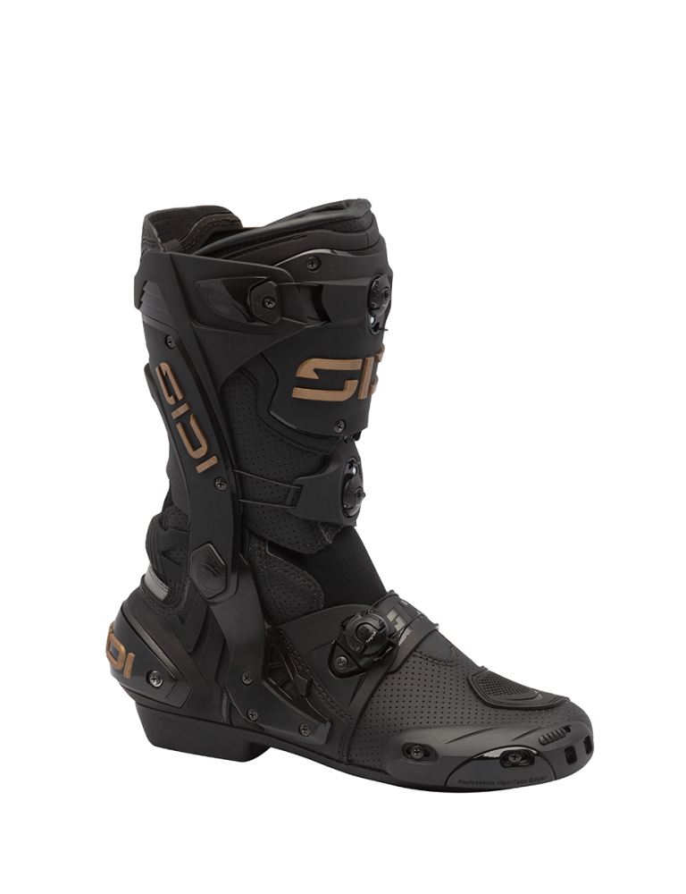 Sidi Rex Air este o cizma care nu face compromisuri atunci cand vine vorba de siguranta. Fiecare componenta a acestei cizme de curse a fost conceputa pentru a oferi protectie maxima. Purtata de piloti profesionisti, Rex este echipata cu protectii TPU de inalta calitate si un exoschelet din nailon ranforsat cu fibra de sticla pentru suport excelent. Sistemul de inchidere cu disc din rasina de inalta densitate este proiectat pentru a asigura o potrivire perfecta si reglaj din ambele parti. Acesta este pozitionat in exteriorul zonelor de contact si integrat in structura cizmei pentru a oferi protectie suplimentara la impact.