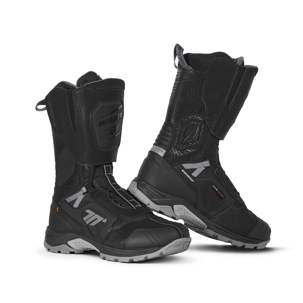 Ghete (cizme) moto Adventure (Touring) Unisex Seventy model SD-BA6 Stelvio culoare: negru/gri Caracteristici: • culoare: negru/gri; • marimi disponibile: 36-49; • utilizare: unisex; • ghete omologate: CE Approved: EN 13634:2017; • ghete inalte Adventuree, fabricate din piele sintetica si nylon; • contine membrane WinterTex rezistenta la apa (waterproof) si interior micro-breathable din polyester ce asigura ventilarea picioroului (breathable); • branturi inlocuibile; • fixarea ghetei: ATOP closure system (rotita de fixare sau eliberare); • banda "double Velcro" si acoperire a sistemului de inchidere (cu scai); • elemente reflectorizante in spate si in laterale pentru a creste vizibilitatea; • intarituri la fluierul piciorului, calcai, glezna si in partea frontala a piciorului; • talpa anti alunecare; • insertii pe partea frontala a ghetei, pentru a evita deteriorarea acesteia de catre maneta de schimbator; • ghete intarite la fluierul piciorului, calcai si degete; fixare optima a gleznei pentru protectie crescuta la accidentari. Compozitie: • exterior: - piele sintetica; • interior: - membrana "micro-breathable' din polyester.