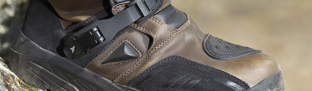 Ghete (cizme) moto Adventure (Touring) Unisex Seventy model SD-BA4 culoare: maro Caracteristici: culoare: maro mărimi disponibile: 39-49 utilizare: unisex ghete omologate: CE Approved: EN 13634:2017 ghete inalte Adventure, fabricate din piele contine membrane WinterTex™ rezistenta la apa (waterproof) si interior din polyester ce asigura ventilarea picioroului (breathable) branturi inlocuibile fixarea ghetei: cu catarame banda "double Velcro" si acoperire a fermoarului (cu scai) elemente reflectorizante in spate si in laterale pentru a creste vizibilitatea talpa anti-alunecare; talpa in 2 culori insertii pe partea frontala a ghetei, pentru a evita deteriorarea acesteia de catre maneta de schimbator ghete intarite la fluierul piciorului, calcai si degete; fixare optima a gleznei pentru protectie crescuta la accidentari Compoziție: exterior: piele interior: membrana "micro-breathable' din polyester