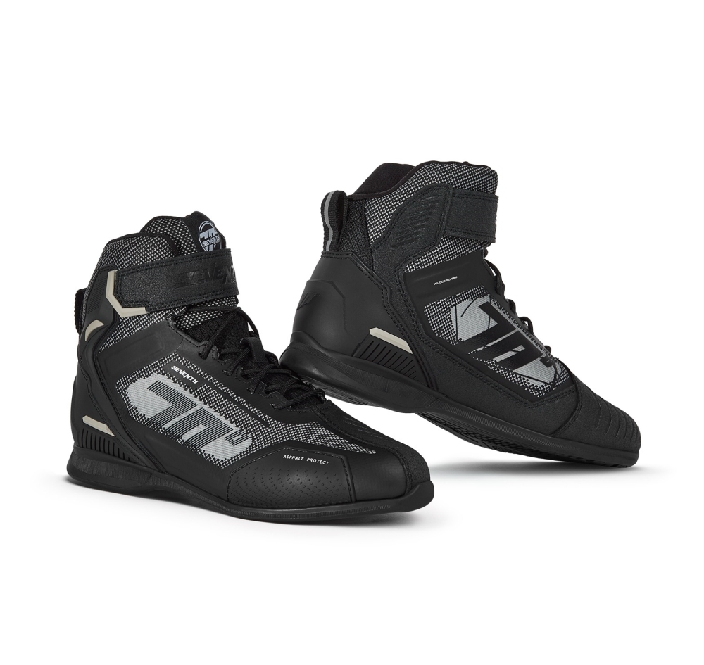Ghete (cizme) moto Racing Unisex Seventy model SD-BR2 Veloce culoare: negru Caracteristici: • culoare: negru; • marimi disponibile: 36-49; • utilizare: unisex; • ghete omologate: CE Approved: EN 13634:2017; • ghete joase Racing, fabricate din microfibra si materiale AIRKNIT; • interiorul ghetei au o membrana fina fabricata din poliester, ce asigura ventilarea picioroului (breathable); • branturi inlocuibile; • fixarea ghetei: cu sireturi + banda Velcro, cu scai; • banda "Velcro" si acoperire a sistemului de inchidere (cu scai); • elemente reflectorizante in spate si in laterale pentru a creste vizibilitatea; • intarituri la fluierul piciorului, calcai, glezna si in partea frontala a piciorului; • talpa anti alunecare; • insertii pe partea frontala a ghetei, pentru a evita deteriorarea acesteia de catre maneta de schimbator; • ghete intarite la fluierul piciorului, calcai si degete; fixare optima a gleznei pentru protectie crescuta la accidentari. Compozitie: • exterior: - microfibra si materiale AIRKNIT; • interior: - membrana soft "micro-breathable' din polyester.
