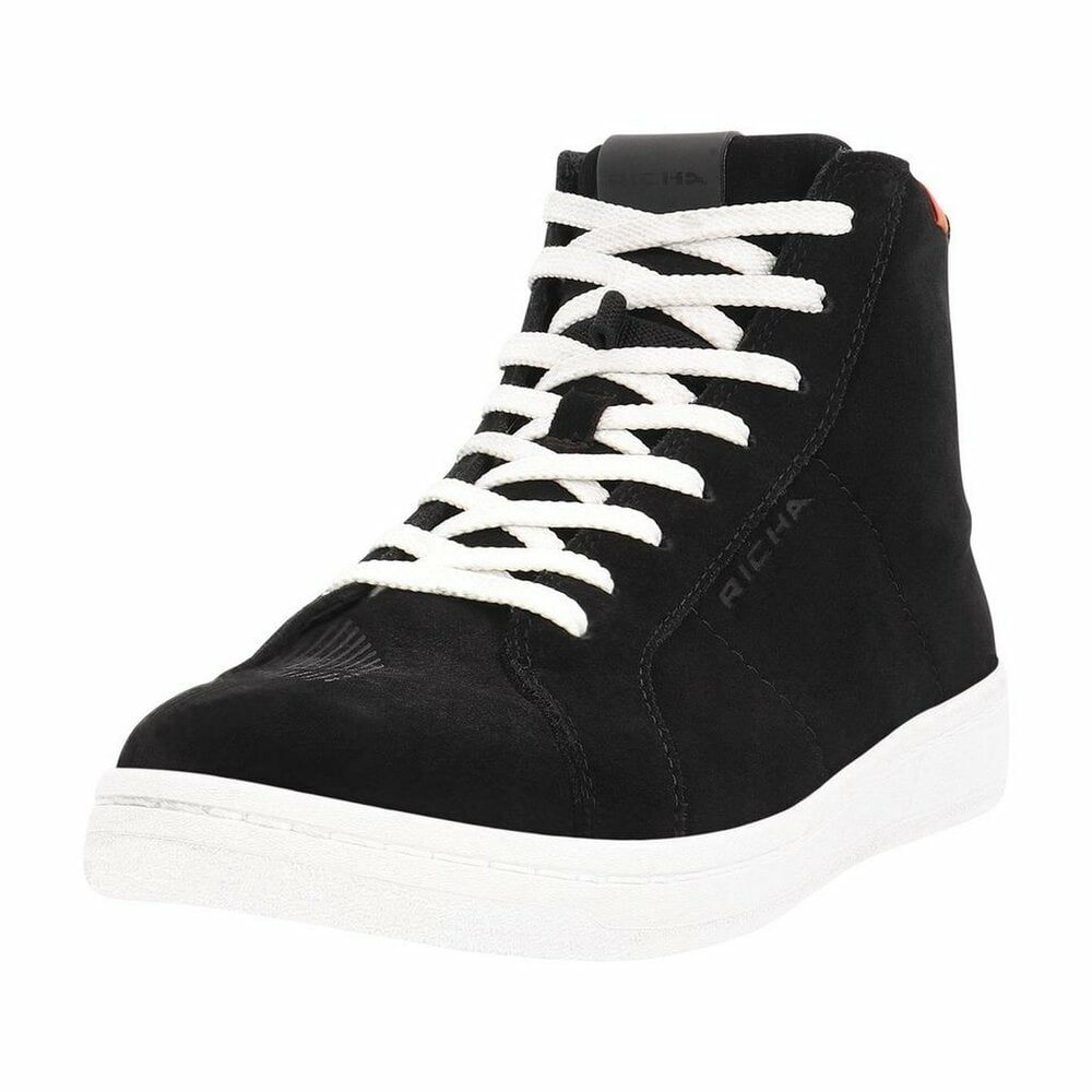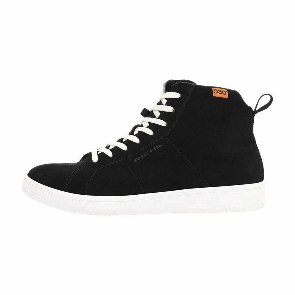 Ghete moto impermeabile Richa Lewis WP Sneakers Ghetele moto impermeabile Richa Lewis WP Sneakers sunt solutia ideala pentru motociclistii care cauta atat stil, cat si protectie. Concepute pentru a arata ca un sneaker de zi cu zi, dar cu toate caracteristicile de siguranta necesare, aceste ghete impermeabile de motocicleta cu talpa inalta sunt perfece pentru plimbarile pe toata durata anului. Confectionate din piele durabila, ghetele Richa Lewis WP Sneakers au o membrana impermeabila integrata, care asigura ca picioarele raman uscate chiar si in cele mai dure conditii meteorologice. Talpile din cauciuc, rezistente la abraziune si uzura, ofera aderenta si tractiune superioare, facandu-le ideale pentru a conduce pe toate tipurile de suprafete, indiferent daca sunt umede sau uscate. Talpile intermediare din EVA ofera o amortizare excelenta, reducand oboseala in timpul calatoriilor lungi, in timp ce partea frontala cu sireturi permite o potrivire ajustabila in functie de preferintele tale! Pentru un plus de confort, este inclusa o pereche de sireturi de rezerva. Incaltarea modelului Richa Lewis WP Sneakers este foarte usoara, datorita curelei de la calcai, asigurand o purtare fara efort de fiecare data. Pentru protectie suplimentara, ele au integrate in constructie protectii D3O, oferind rezistenta la impact si asigurand siguranta dvs. in timpul calatoriilor. Certificati conform CE 1121, acesti adidasi indeplinesc standarde inalte de siguranta, fiind incaltamintea ideala pentru motociclistii care doresc atat confort, cat si protectie, fara a sacrifica stilul. Perfect pentru motociclistii care prefera un aspect casual, asemanator incaltamintelor de zi cu zi, fara a compromite caracteristicile esentiale de protectie ale unei cizme de motocicleta, Lewis WP Sneaker este un accesoriu indispensabil in colectia de echipamente a oricarui motociclist. Caracteristici principale bucla de incaltare pozitionata in partea din spate pentru o incaltare mai rapida si usoara talpa interioara din EVA inchidere cu sireturi talpa exterioara din cauciuc rezistenta la uzura, cu textura specifica pentru a spori aderenta potrivite pentru toate perioadele anului intarituri suplimentare D3O la nivelul gleznelor membrana impermeabila Aquashell respirabila si rezistenta la vant captuseala interioara confortabila din textil strat exterior din piele