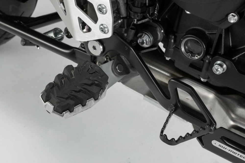 Scarita EVO Sw-motech imbunatateste stabilitatea pentru picioare, ofera confort si tractiune sub o varietate de conditii. Pivotabila, cu 36 de setari, reglarea individuala pentru inaltime,pozitie si unghi, garanteaza cea mai buna ergonomie posibila. Instalare usoara cu balama de montare (inclus in Kit scarita EVO pentru motociclete specifice) pe scarita originala. 36 setari de pozitie (fata,spate,sus,jos,unghi) Conexiune puternica Marcaje pentru ajustarea simetrica in ambele parti Profil cu margini rotunjite asigura o aderenta excelenta Insertie de cauciuc detasabila (cca. 8 x 5 cm) pentru sprijin si confort Material: electrochimic, rezistent la coroziune din otel inoxidabil Culoare: argintiu su insertie de cauciuc negru Include: Scarita EVO pentru partea stanga si dreapta 2x adaptoare specifice motocicletei Materiale de montare instructiuni de montare Detali: Material: Otel inoxidabil cauciuc Culoare: Argintiu Negru