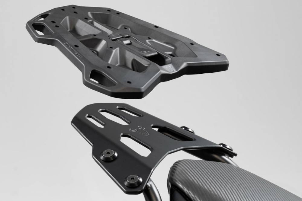 Sistem Top Case TRAX ADV Acest sistem all-in-one include toate produsele necesare pentru montarea unui topcase: topcase TRAX ADV, suport de montare specific motocicletei, placa adaptoare si set de iale TRAX Lock. Top case-ul din aluminiu ofera o durabilitate extinsa si este rezistent la apa si la praf. Pachetul contine: TRAX ADV Top case Set iale + chei Limitaror capac Geanta de transport Suport specific motocicletei Placa adaptoare Material montare Instructiuni pentru montare Caracteristici Top Case: Fabricat din aluminiu de 1.5mm Colturi in plastic ranforsat cu fibra de sticla Modele in relief Sudurile robotizate si tehnologia de nituire previn patrunderea umezelii Cutiile sunt anodizate(cele argintii) sau acoperite cu pulbere(cele negre) impotriva oxidarii si abraziunii Suprafata usor de curatat Capac cu dispozitiv de fixare cu eliberare rapida si limitator Zavoare din otel inoxidabil, manere din aluminiu anodizat 4 puncte de legare, integrate in colturile capacului Garnitura de etansare se poate inlocui Set iale, incuieturi si chei inclus Capacitate: 38 l Dimensiuni: 41 x 34 x 33 cm Greutate: 4.8 kg Material: aluminu(1.5 mm) Caracteristici suport: Specific motocicletei - ALU-RACK STREET-RACK ADVENTURE-RACK Integrat perfect in aspectul motocicletei Fabricat din aliaj de aluminiu TRAX ADV este disponibil in doua culori: negru si argintiu