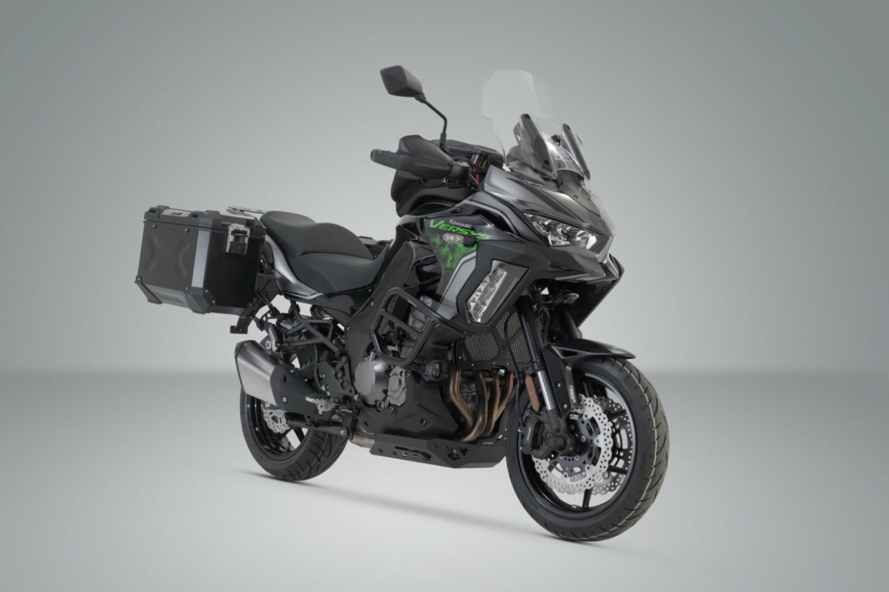 Sistem cutii laterale TRAX Adventure Aluminium CAsTIGATOR DE TEST in revista MOTORRAD numarul 05 2020. Rezultatul testului: FOARTE BUN Cutiile TRAX ADVENTURE accepta orice provocare: modelele in relief ajuta la stabilitatea peretilor sudati din aluminiu cu grosimea de 1,5 milimetri. Capacul detasabil cu manere de transport si dispozitivul de fixare cu eliberare rapida permit incarcarea si descarcarea usoara a cutiilor. Acest set consta din doua cutii laterale pentru motociclete TRAX ADVENTURE, de asemenea incluse sunt suporturile laterale, adaptoare si sistem de blocare la un pret atractiv. Configuratia suportului si a carcasei au fost atent proiectate pentru a fi compatibile cu geometria coditei si a sitemului de evacuare a motocicletei. Odata instalat adaptorul, montarea cutiilor se face cu o usurinta deosebita. Caracteristici: C utii din aluminiu rezistente si etanse Capac complet detasabil cu dispozitiv de fixare cu eliberare rapida si limitator de deschidere 4 puncte de legare, integrate in geometria capacului Coltul capacelor este ranforsat cu plastic ultra-rezistent Balamale din otel Garnituri inlocuibile Pachetul contine: 2 cutii TRAX ADV Aluminium sine de montare preinstalate suport lateral specific motocicletei set adaptor opritor de restrictionare a capacului iale + chei dispozitiv antifurt geanta de transport material pentru montare instructiuni de montare