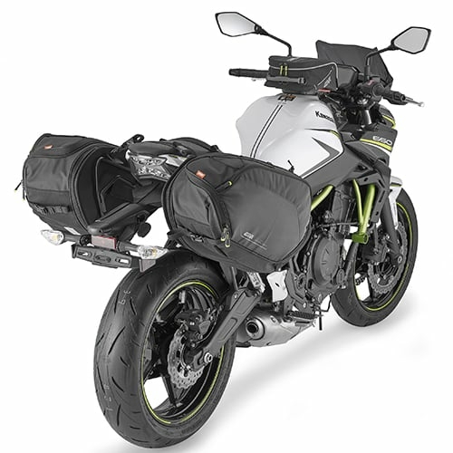 Set genti laterale Givi extensibile de 30 litri Genti laterale practice si versatile, ideale pentru ture scurte sau de weekend. Volumul fiecarei genti este extensibil de la 20 la 30 litri, oferind flexibilitate in functie de necesarul de bagaj. Materiale: Poliester 600D PU cu tratament W R (rezistent la apa) Insertii din PU Elemente reflectorizante negre (piping si printuri) Material reflectorizant negru mat pentru un aspect discret si vizibilitate sporita Dotari standard: 1 buzunar frontal exterior cu fermoar, echipat cu sistem de blocare a cursorului pentru a preveni fluturarea in timpul mersului Printuri reflectorizante pentru vizibilitate crescuta Design extensibil: capacitate ajustabila intre 20 si 30 litri Ranfort interior detasabil pentru mentinerea formei Husa interioara impermeabila, galben fluo, pentru protectie completa impotriva apei Chingi de compresie a incarcaturii , ajuta si la fixarea gentilor de cadrul lateral Sistem de prindere cu inel dublu si chingi care se monteaza sub sa Insertii reflectorizante pentru vizibilitate pe timp de noapte Cordelina elastica multifunctionala pentru atasarea incarcaturii suplimentare