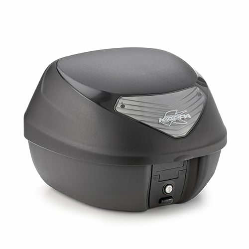 Top Case negru capacitate de 29 L de la Kappa, Top case de 29 L, negru, cu catadioptrii rosii sau fumurii. Vine complet cu placa de montaj. Poate depozita 1 casca integrala Specificatii: Lungime 407 mm Latime 400 mm Inaltime 307 mm Volum 29 L Sarcina Maxima 3 kg Tip prindere Monolock (include placa de montaj)