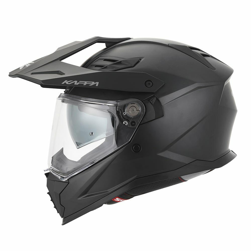 Casca moto enduro , touring Kappa KV33 Enduro Basic Casca Kappa KV33 Enduro Basic este un model full-face versatil, ideal pentru enduro sau touring, cu protectie solida din termoplastic si viziera pregatita pentru Pinlock. Ofera confort sporit prin interior detasabil, ochelari de soare integrati si ventilatie eficienta, completata de un cozoroc util atat pe drum, cat si off-road. Protectie completa si constructie durabila Kappa KV33 Enduro Basic este o casca full-face proiectata pentru motociclistii care combina traseele de enduro cu cele de enduro-touring, oferind protectie avansata, confort si functionalitate intr-o constructie moderna. Modelul se remarca prin versatilitatea ridicata, fiind ideal atat pentru aventuri off-road, cat si pentru drumuri lungi pe asfalt.Cozorocul este un element important pentru utilizarea dual-purpose: pe touring protejeaza ochii de razele soarelui, iar in off-road te apara de crengi, pietricele si alte obstacole intalnite pe trasee enduro. Caracteristici principale: Fabricat din termoplastic de inalta rezistenta Carcasa fabricata in 2 marimi Cozoroc (peak) Ochelari de soare retractabili, integrati in interiorul castii Interiorul este complet detasabil si se poate spala Inchidere micrometrica Viziera este pregatita pentru Pinlock reg; Max Vision DKS630 (pinlock-ul nu este inclus) Prize de aer superioare Sistem de ventilatie pe barbie Greutate 1650+ -50 gr Norma de siguranta ECE 22.06 Marimi disponibile : 54 XS , 56 S , 58 M , 60 L , 61 XL , 63 XXL