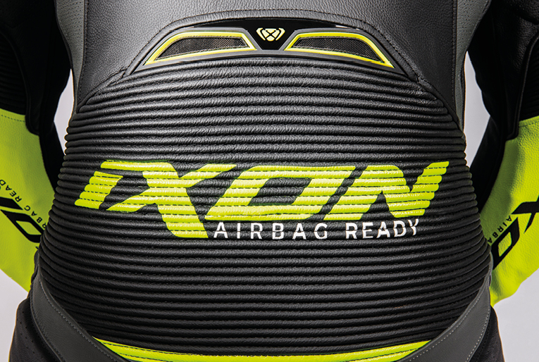 • intarituri cu materiale de calitate superioara la zonele expuse in caz de cazaturi (strat dublat de piele, mesa (mesh) 3D AIR Space), pentru siguranta si pentru o aerodinamica mai buna (piept, bicepsi, tricepsi, umeri si coapse);