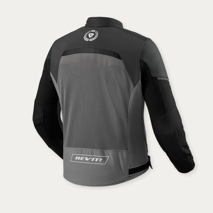 At the upper chest of the left side, race-inspired laminated prints including RV95 - the year of REV’IT!’s birth, 1995 - #thefuturebelongstous, and our Shield logo, make it immediately recognizable as something that sets it apart from the rest of the collection. You’ll also see the text, “Ready and willing to ignite,” because that’s what we are and that’s what this jacket does. It’s ready to play. Subtle branding is also found at the upper backside of the jacket.