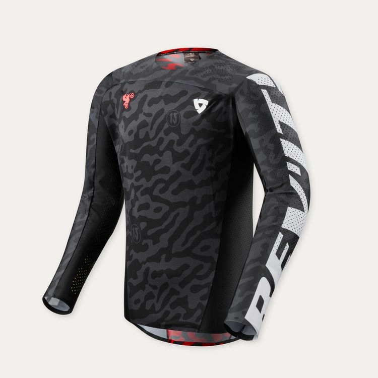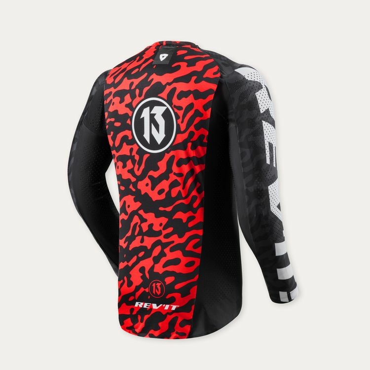 All-out Pol Tarrés style: this is the Thirteen jersey. Named for the #revitrider’s race number and decked out in Pol’s outspoken style and red and black colors, the Thirteen jersey is a statement piece for the trails and rally adventures.