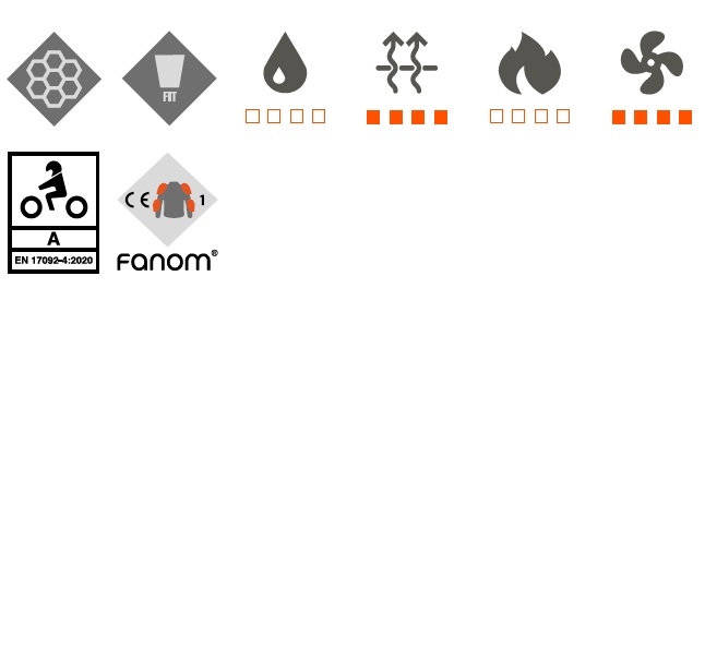 • protecții pentru umeri si coate: Protecții Fanom® SEKA_1, Tip A Nivel 1;