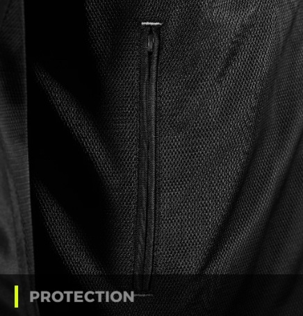 Aceasta geaca certificata pe clasa de certificare A include protectii de umeri si coate Level 1, precum si un buzunar pentru protectia spate (ATENTIE: protectia spate nu este inclusa, ci se poate achizitiona separat).
