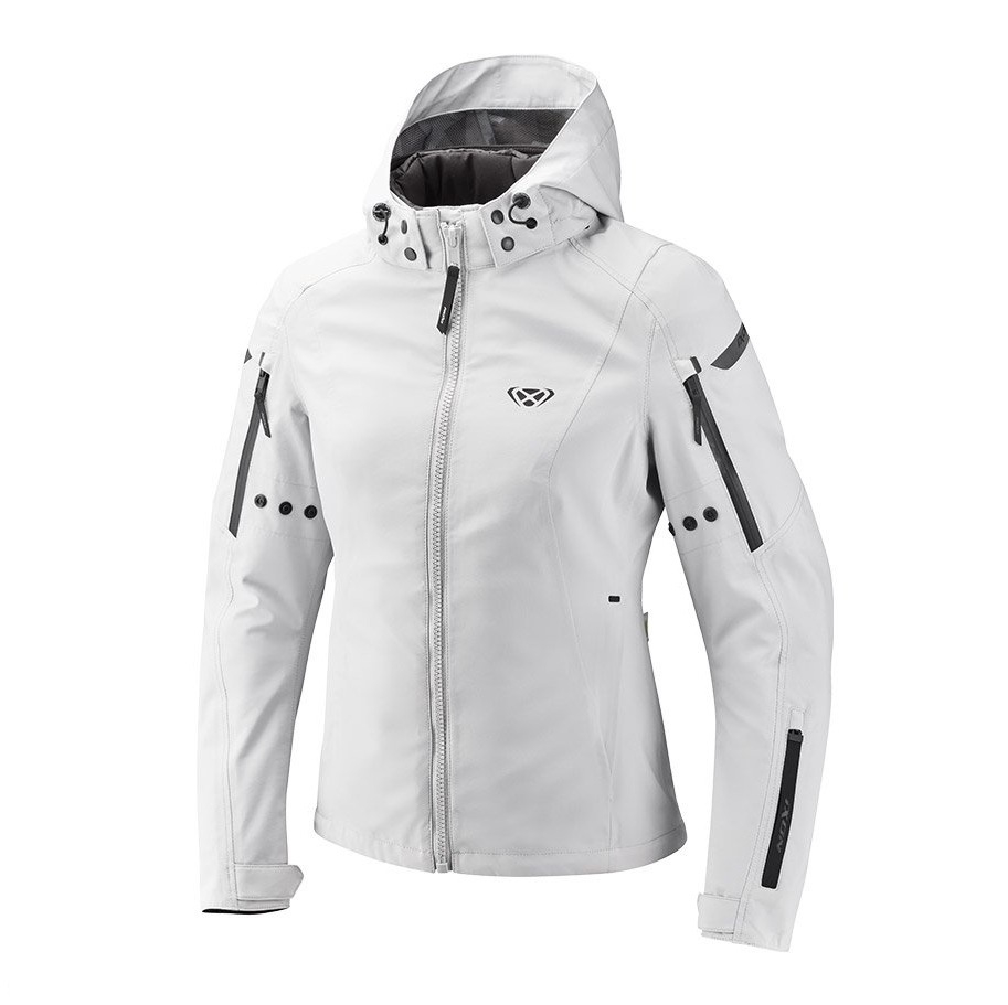 Geaca (jacheta) motociclete femei Touring/Adventure/Urban Ixon All season model Burning LS culoare: gri deschis (light grey) (geaca laminata; waterproof si pe exterior)