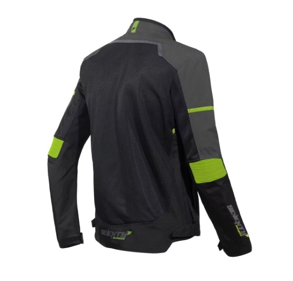 Protectiile exterioare de la umeri ii confera gecii un stil racing, sporind si protectia oferita. Geaca poate fi ajustata la solduri, pentru o potrivire optima. Elementele de neopren la guler si maini, precum si elementele reflectorizante de pe exteriorul gecii cresc sporesc vizibilitatea si confortul.