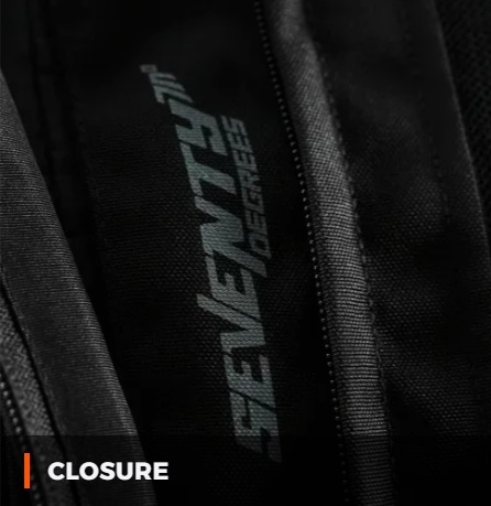 • noile protectii Seventy WINDFLEX Level 2, la umeri si coate, omologate si detasabile, sunt noua gama de protectii lansata de Seventy, construite tip fagure, pentru o ventilare mai buna si asigurarea unei protectii ridicate la impact, fara a crea disconfort la purtarea gecii;