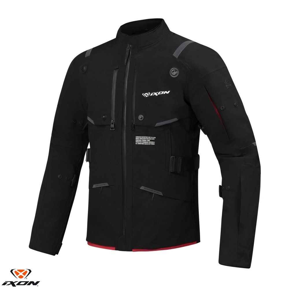Geaca (jacheta) motociclete barbati Touring/Adventure Ixon All season model M-Skeid MS culoare: negru/rosu - concept modular (geaca laminata; waterproof si pe exterior)