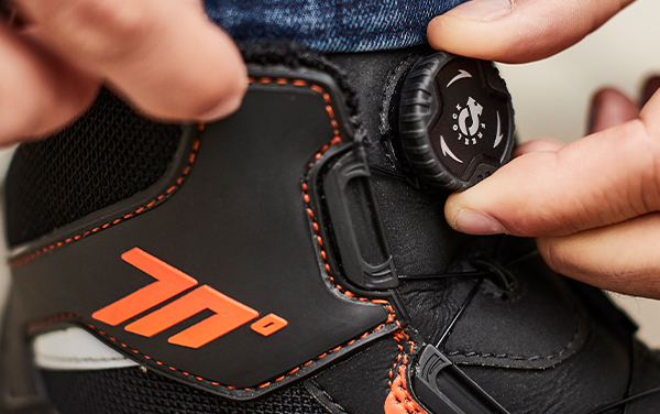 Ghete moto Urban Unisex Seventy model SD-BC10 culoare: negru/portocaliu Caracteristici: • culoare: negru/portocaliu; • marimi disponibile: 36-49; • utilizare: unisex; • ghete omologate: CE Approved: EN 13634:2017; • aspect sportiv; • ghete intarite la calcai, glezna si degete; • ghete fabricate din microfibre, ideale pentru utilizare zilnica; • pentru o asigurare fixare mai buna si pentru un confort sporit si o siguranta maxima, ghete se regleaza cu un sistem de strangere actionat prin rotita centrala; • sistemul de strangere permite fizarea ghetei foarte rapid; • pentru slabirea fixarii ghetei sau pentru desfacerea ei, se trage rotita in exterior; • talpa antiderapanta; • insertii reflectorizante in partile laterale si in spate, pentru o vizibilitate crescuta.