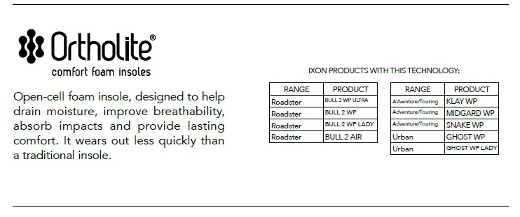 • Ortholite (comfort foam insoles) – brant interior din spumă cu celule deschise, conceput pentru a ajuta la drenarea umezelii, îmbunătățirea respirabilității, absorbția impacturilor și oferirea unui confort de lungă durată. Se uzează mai rar decât un branț interior tradițional.