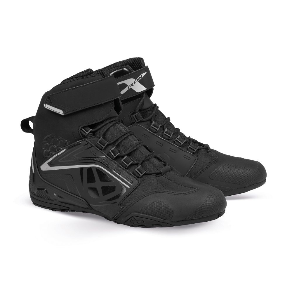 Ghete moto Roadster femei All Season Ixon model Killer WP LS culoare: negru/argintiu (100% waterproof) Ghete moto Roadster, ce ofera ventilare, sunt foarte tehnici si aspect agresiv. Cu gama Roadster, e garantat ca vei conduce protejat. Descriere: • culoare: negru/argintiu; • ghete all season; • tip: Roadster; • ghete waterproof. Caracteristici: • impermeabilitate: da; • protectie termica: medie. Siguranta: • model certificat CE, level 1111, standard omologare: EN 13634:2017 (Level 1111 WR); • membrana Waterproof and breathable (26000 Schmerber); • intarituri la calcai; • intarituri la degete; • benzi reflectorizante. Specificatii tehnice: • exterior: 40% polyurethane, 34% polyester, 16% nylon, 10% vinyl polychloride; • exterior (partea superioara): microfibra PU; Ripstop; • interior: mesa (mesh) 100% polyester; • talpa: 100% cauciuc. Functionalitate si confort: • sistem fixare cu sireturi si banda cu scai; • banda de scai in partea superioara a ghetei, pentru o fixare optima; • usor de incaltat, datorita urechii din spate.