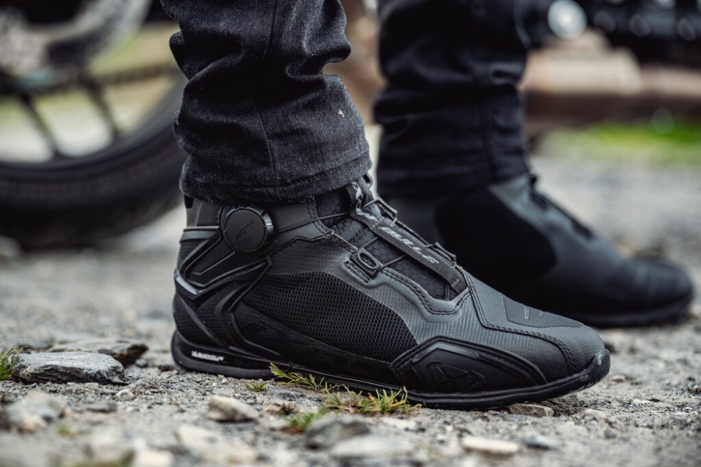 Ghete moto Roadster barbati All Season Ixon model Bull 2 Air MS culoare: negru Pastrand punctele forte ale primului model (Bull Air - aspect distinct, potrivire perfecta a marimii + talpa Michelin), modelul nou de gheata Ixon Bull 2 Air inaugureaza noul sistem de prindere si blocare al ghetei: FIDLOCK® Winch - un sistem rotativ magnetic care poate fi operat cu o singura mana. Descriere: • culoare: negru; • ghete all season; • tip: Roadster; • ghete ventilate. Caracteristici: • impermeabilitate: nu; • protectie termica: nu. Siguranta: • model certificat CE, level 1, standard omologare: EN 13634:2017 (Level 1111 WR); • intarituri la calcai; • intarituri la degete; • intarituri la glezna. Specificatii tehnice: • exterior: microfibra; • exterior (partea superioara): 58% polyester; 42% polyurethane; • interior: mesa (mesh) 100% polyester; • talpa: 100% cauciuc (produsa de Michelin); • talpa anti-alunecare. Functionalitate si confort: • talpa antialunecare pe exterior; • sistem nou de prindere si blocare al ghetei: FIDLOCK® Winch - un sistem rotativ magnetic care poate fi operat cu o singura mana.; • banda de scai in partea superioara a ghetei, pentru o fixare optima; • usor de incaltat, datorita urechii din spate.