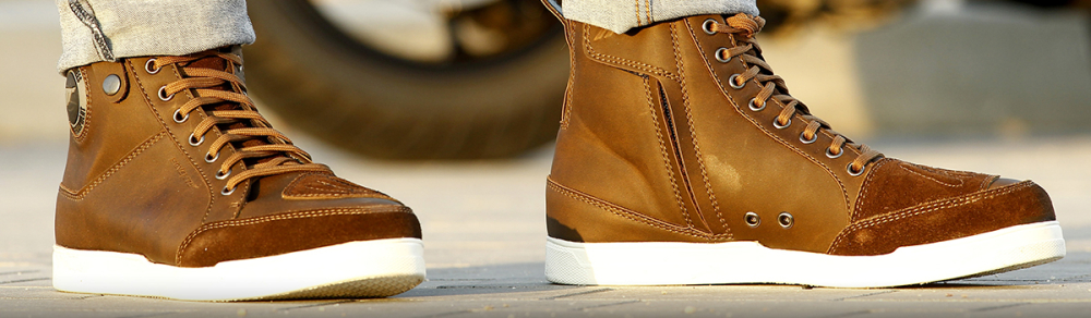 Ghete moto Urban Unisex Seventy model SD-BC7 culoare: maro Caracteristici: • culoare: maro; • marimi disponibile: 39-49; • utilizare: unisex; • ghete omologate: CE Approved: EN 13634:2017; • aspect casual; • 100% "breathable"; • insertii reflectorizante in partea din spate a incaltamintei si in lateral, pentru o vizibilitate crescuta; • ghetele sunt prevazute cu protectie pentru pedala de schimbator a vitezelor; • talpa tratata anti alunecare; • in partea laterala exterioara a ghetei se pot fixa sireturile cu capsa, pentru a nu se agata de componente ale motocicletei; • ghete intarite la calcai si degete; • ghete fabricate din microfibre, ideale pentru utilizare zilnica; • pentru o fixare mai buna a ghetei pe picior, pentru un confort sporit si o siguranta maxima, ghete se regleaza cu sireturi de inalta calitate si cu fermoar in partea din interior.
