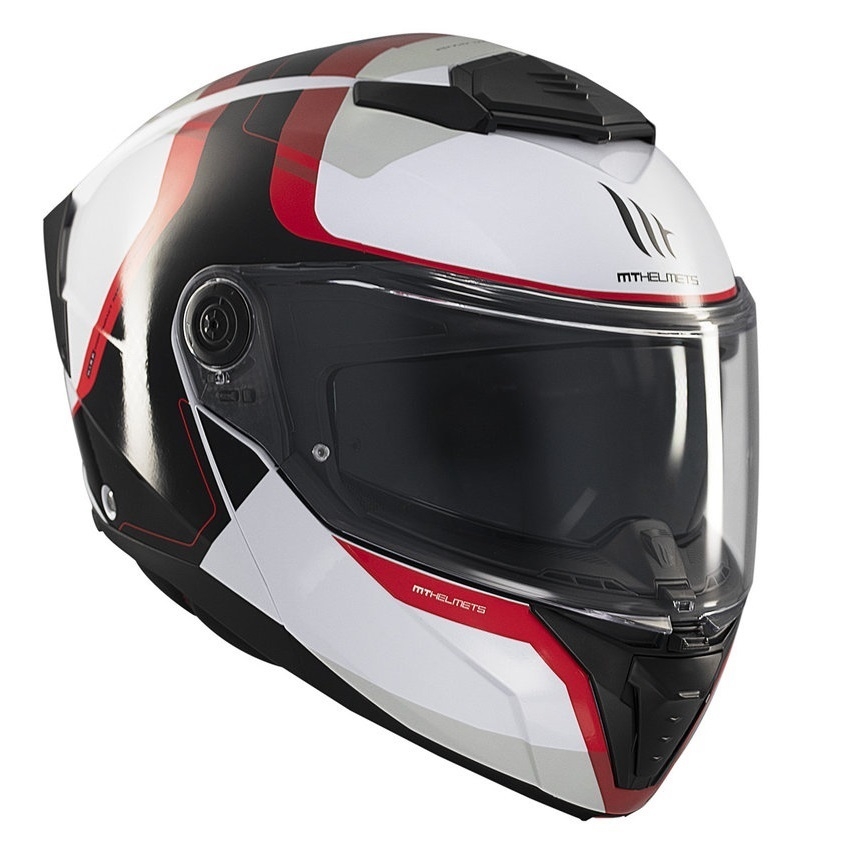 Casca modulabila MT Atom 2 SV Emalla B0 alb/rosu mat (ochelari soare integrati) Pinlock Ready - tip viziera: MT-V-35