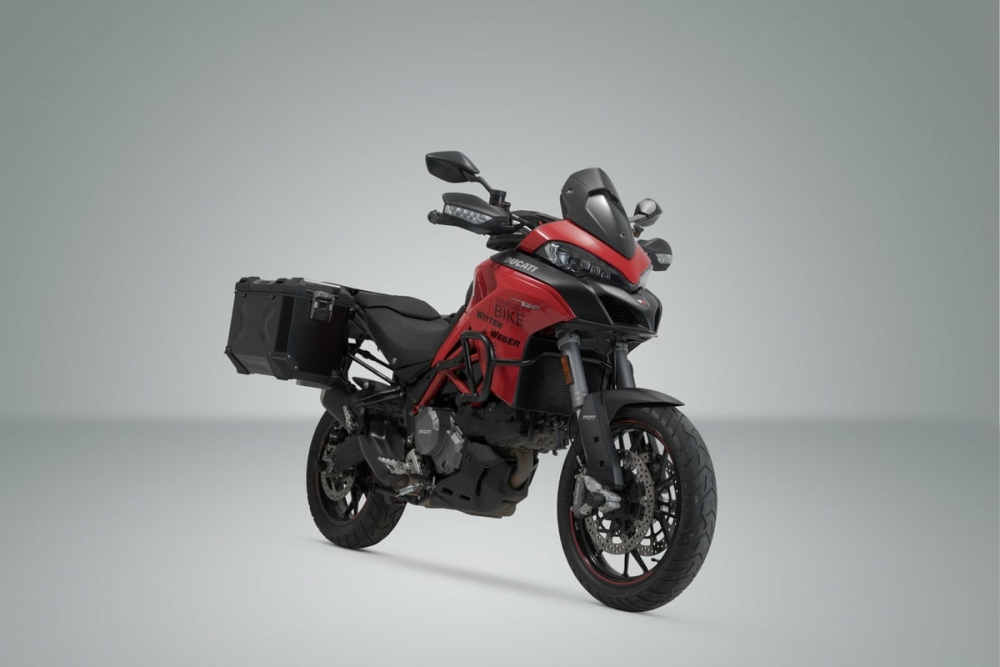 Sistem cutii laterale TRAX Adventure Aluminium CAsTIGATOR DE TEST in revista MOTORRAD numarul 05 2020. Rezultatul testului: FOARTE BUN Cutiile TRAX ADVENTURE accepta orice provocare: modelele in relief ajuta la stabilitatea peretilor sudati din aluminiu cu grosimea de 1,5 milimetri. Capacul detasabil cu manere de transport si dispozitivul de fixare cu eliberare rapida permit incarcarea si descarcarea usoara a cutiilor. Acest set consta din doua cutii laterale pentru motociclete TRAX ADVENTURE, de asemenea incluse sunt suporturile laterale, adaptoare si sistem de blocare la un pret atractiv. Configuratia suportului si a carcasei au fost atent proiectate pentru a fi compatibile cu geometria coditei si a sitemului de evacuare a motocicletei. Odata instalat adaptorul, montarea cutiilor se face cu o usurinta deosebita. Caracteristici: C utii din aluminiu rezistente si etanse Capac complet detasabil cu dispozitiv de fixare cu eliberare rapida si limitator de deschidere 4 puncte de legare, integrate in geometria capacului Coltul capacelor este ranforsat cu plastic ultra-rezistent Balamale din otel Garnituri inlocuibile Pachetul contine: 2 cutii TRAX ADV Aluminium sine de montare preinstalate suport lateral specific motocicletei set adaptor opritor de restrictionare a capacului iale + chei dispozitiv antifurt geanta de transport material pentru montare instructiuni de montare