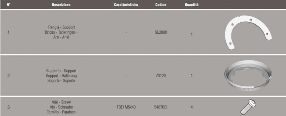 Flansa metalica Givi pentru fixare geanta rezervor BF52