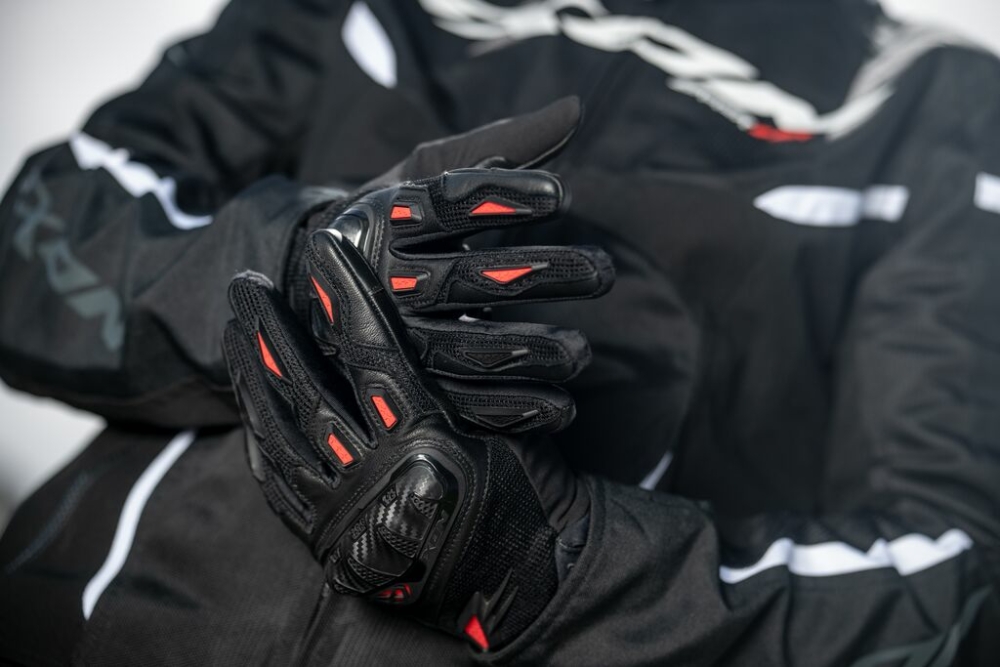 Manusi barbati Roadster vara piele/textil Ixon model Rise Air 2 MS culoare: negru/rosu - degete tactile